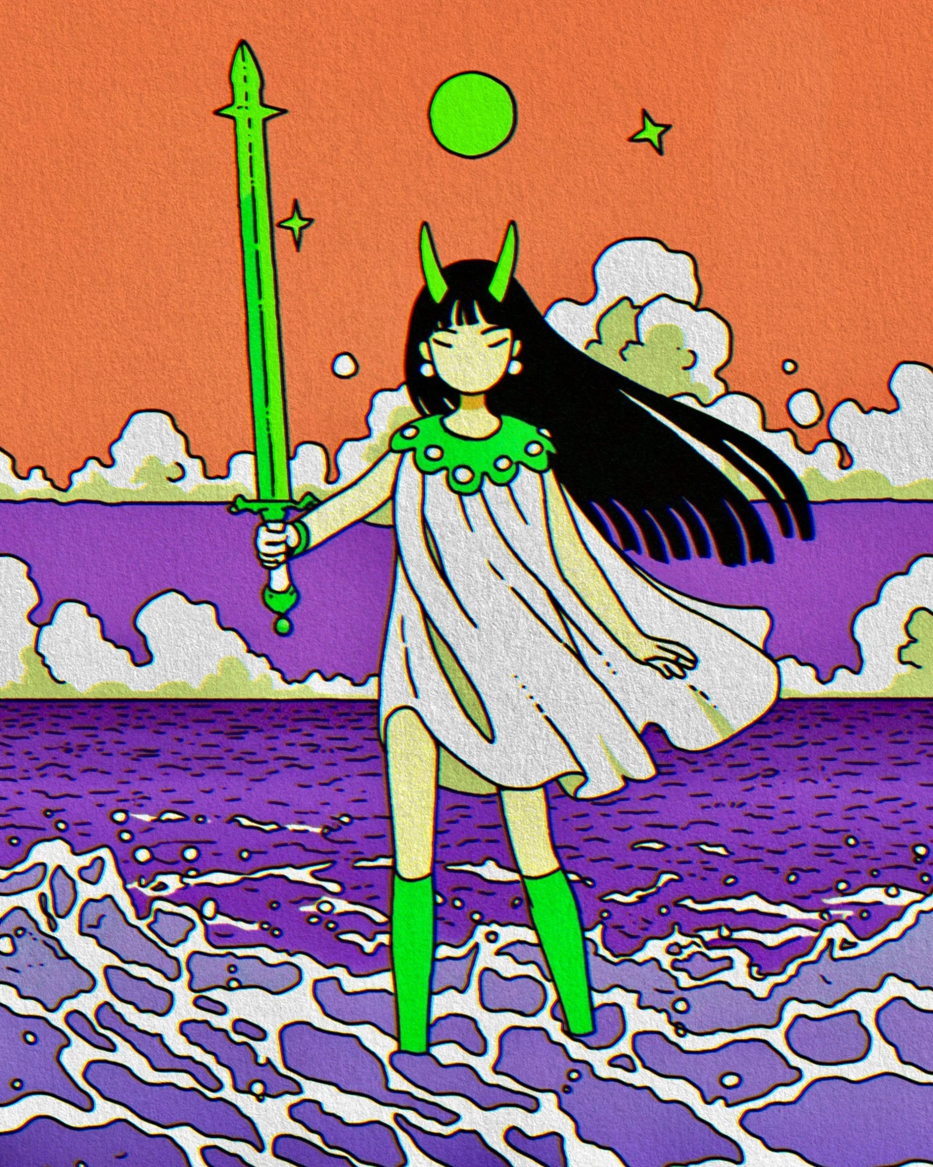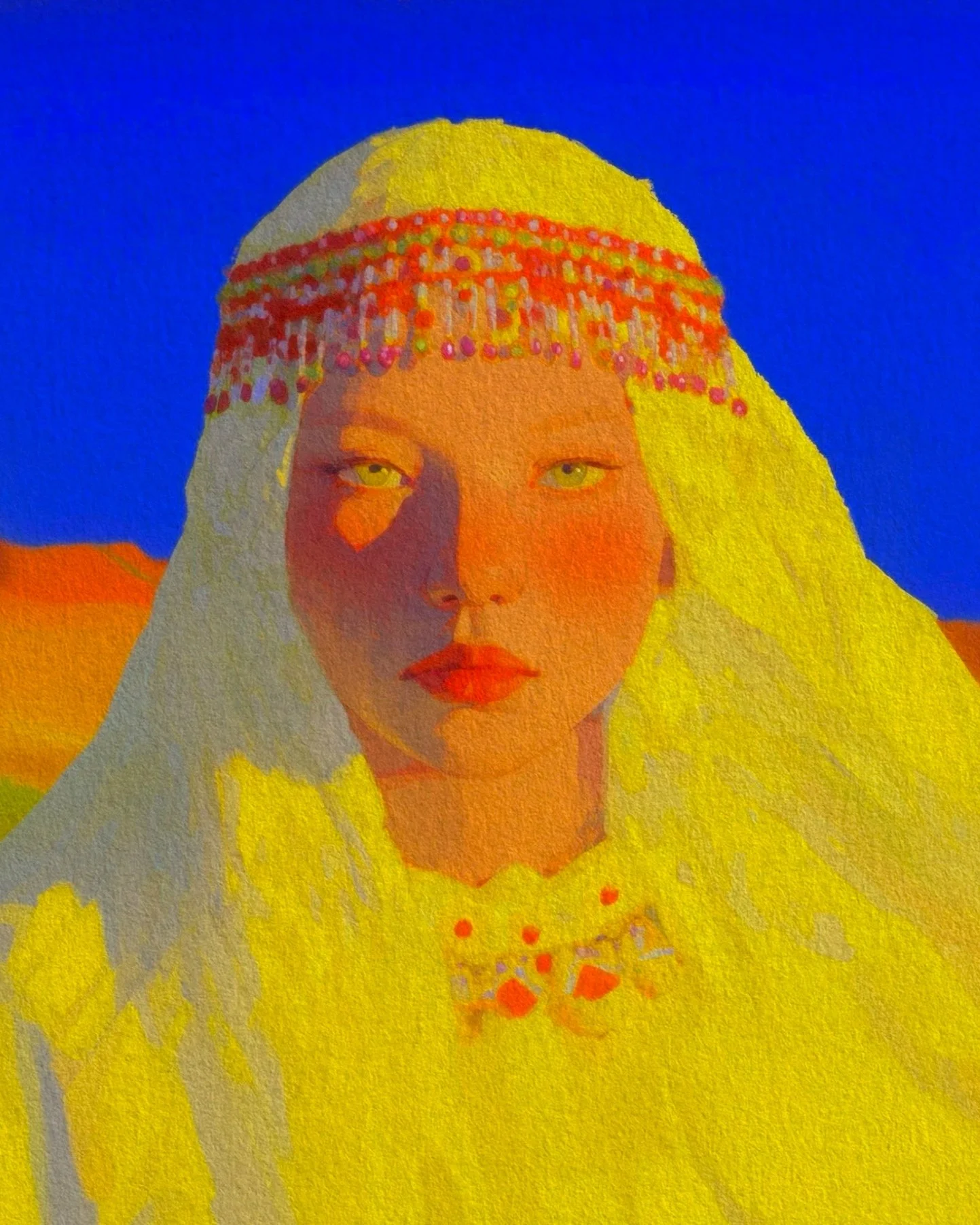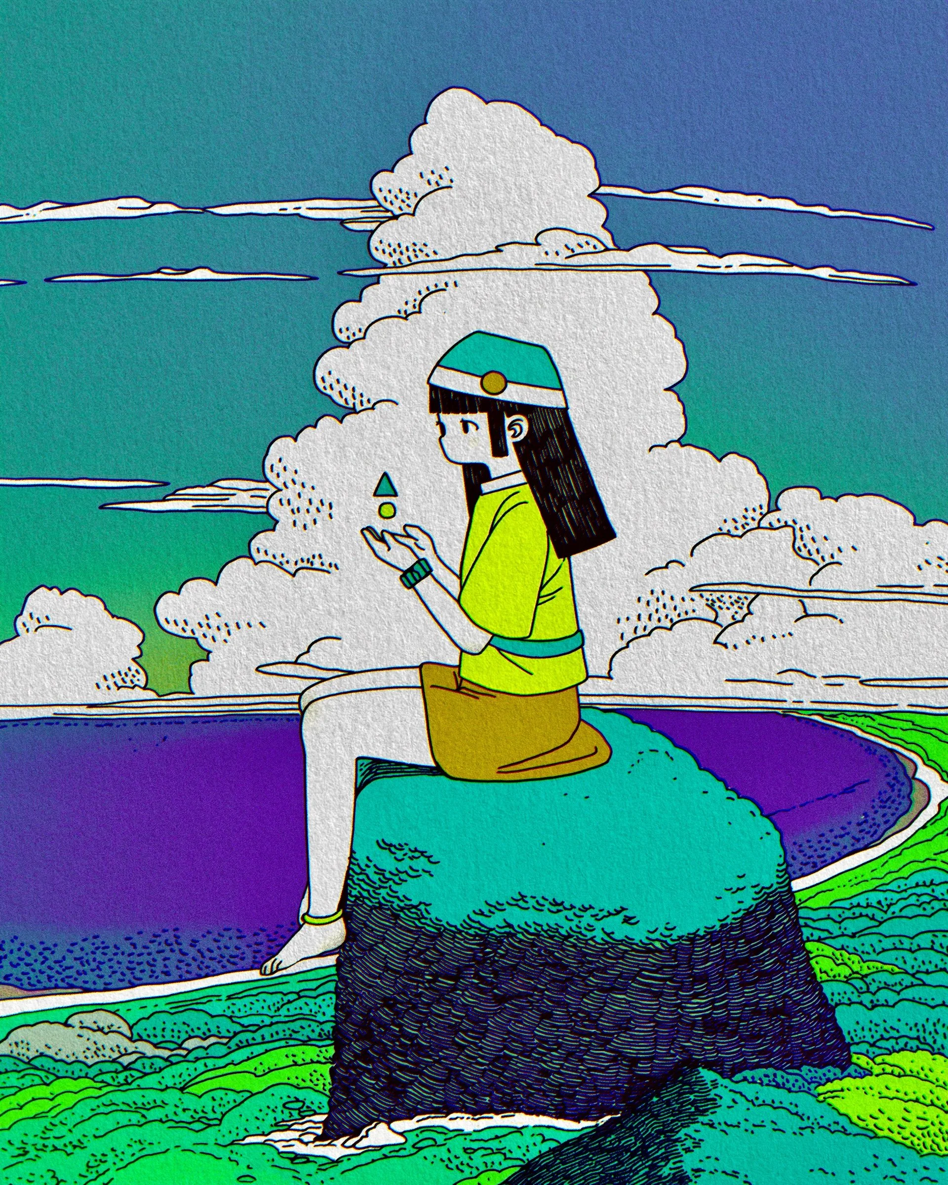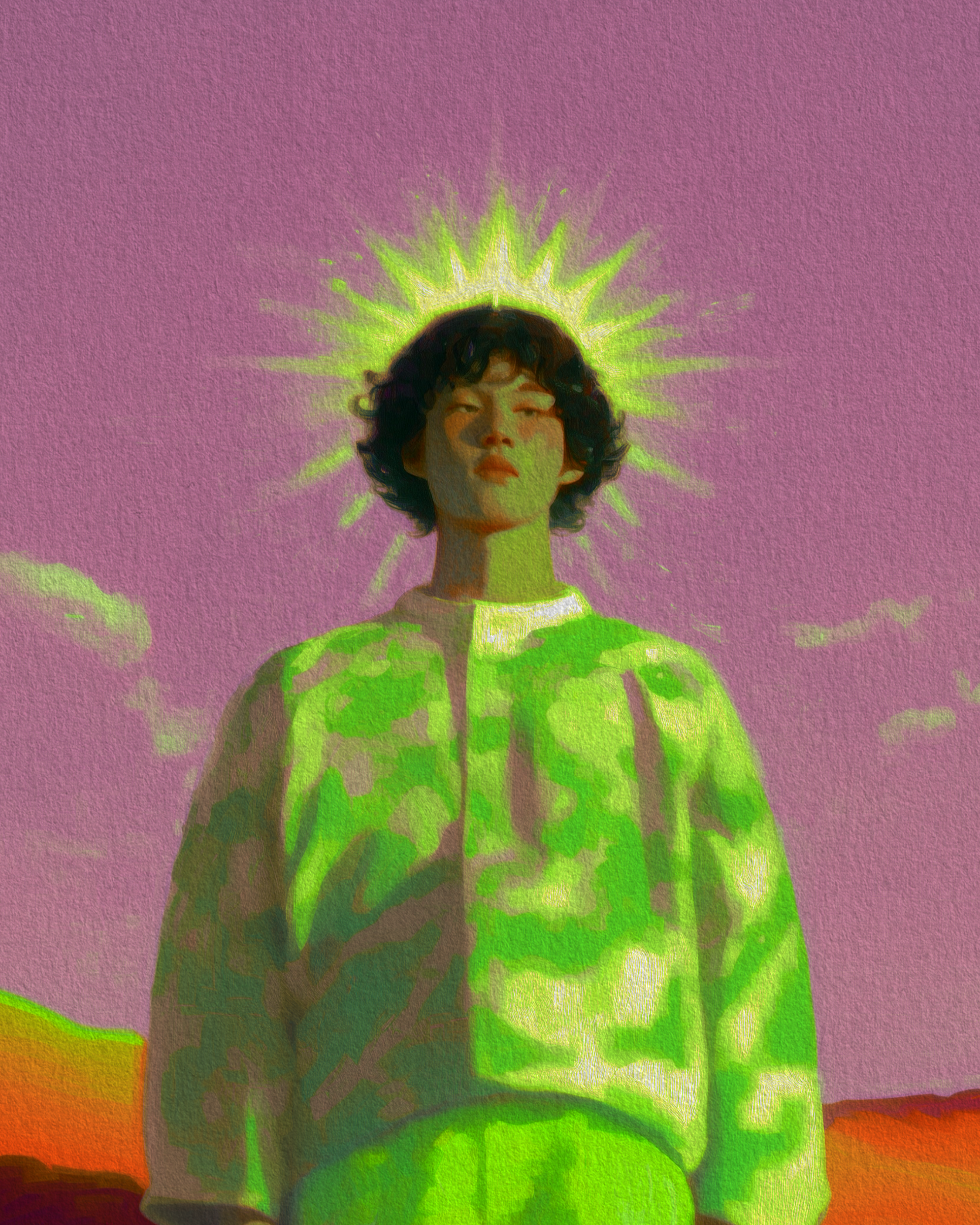 My aesthetic thrives on contradictions: it is simultaneously spiritual and synthetic, ancient and futuristic, melancholic and luminous. The result is a hypnotic visual language that resonates with our collective yearning for transcendence in a world saturated with noise. My art lies at the crossroads of dream and revelation, a visual dialogue between solitude, awakening, and identity. My vibrantly colored works blend mystical symbolism and emotional serenity in scenes that are both deeply personal and universally transcendent.